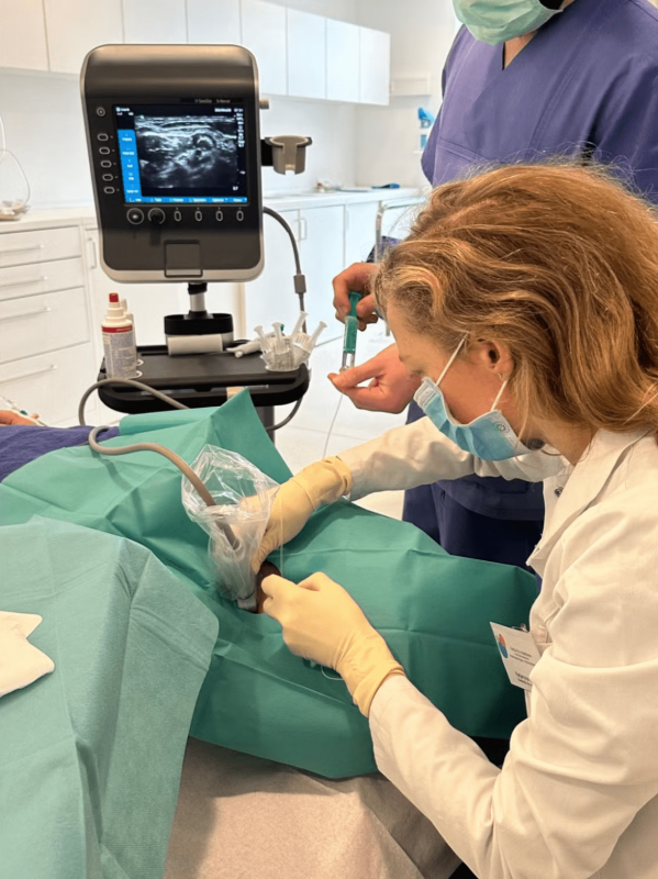 Bei orthopädischen Eingriffen bieten wir die Kombinations-Anästhesie von Vollnarkose mit regionalen Anästhesiemethoden. Ein regionales Anästhesieverfahren besteht aus dem Anlegen eines Schmerzkatheters, der durch regelmäßiges Nachspritzen oder das Anschließen einer Schmerzpumpe eine weitgehende Schmerzfreiheit des Patienten während und nach dem Eingriff gewährleistet. In unserer Klinik führen wir standardgemäß das Anlegen dieses Schmerzkatheters mit Hilfe von Ultraschall durch. Somit werden die Qualität und die Dauer der Schmerzausschaltung optimiert und die Patientenzufriedenheit durch weniger Fehlpunktionen und Korrekturen der Nadelposition deutlich erhöht.