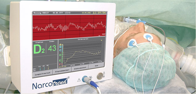 Das Hirnstrombild (Elektroencephalogramm (EEG)) verändert sich unter dem Einfluss von schlaffördernden Narkosemitteln.Hierbei kann mittels Klebeelektroden auf der Stirn, die einfach nach der Narkose wieder entfernt werden, das Hirnstrombild während der Narkose abgeleitet werden. Den Narcotrend-Monitor, der nicht zum „Pflicht-Monitoring“ zählt, verwenden wir in der Klinik regelmäßig. Er hilft mit einer automatisierten Interpretation, Narkosemittel individuell und bedarfsgerecht zu geben. Eine individuelle Überdosierung oder eine Unterdosierung der Narkosemittel mit der Möglichkeit von bewussten Wahrnehmungen können so vermieden werden.